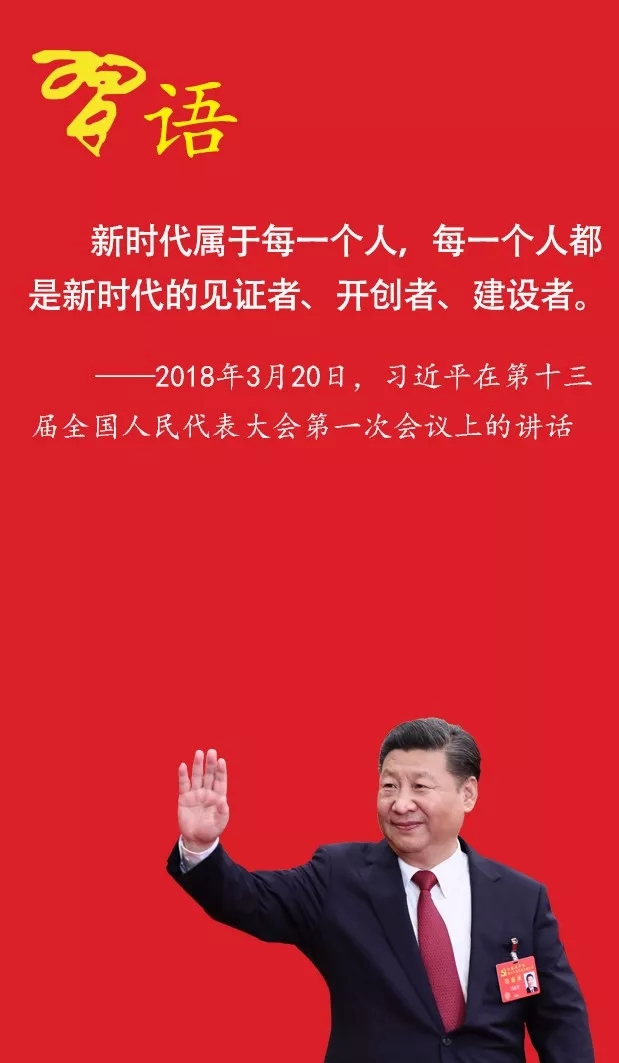 新時(shí)代屬于每一個(gè)人,每一個(gè)人都是新時(shí)代的見(jiàn)證者、開(kāi)創(chuàng)者、建設(shè)者。只要精誠(chéng)團(tuán)結(jié)、共同奮斗,就沒(méi)有任何力量能夠阻擋中國(guó)人民實(shí)現(xiàn)夢(mèng)想的步伐!