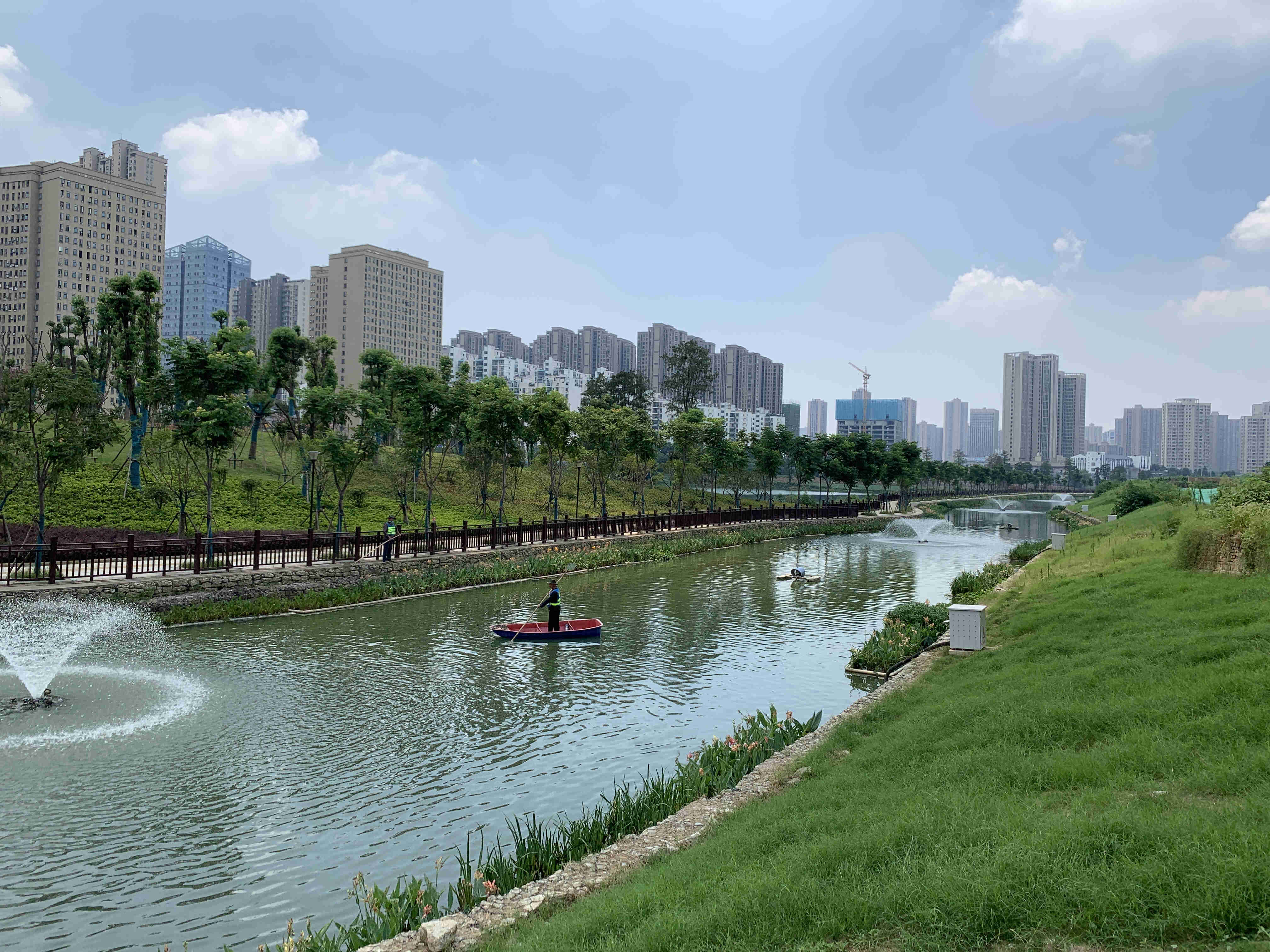 ? ? ? 龍陽湖明渠位于漢陽區(qū)龍陽湖東北角,全長0.8公里,是龍陽湖匯水系統(tǒng)的主要排水通道,承擔(dān)著3.4平方公里陸域面積的來水,降雨時平均排水量可達(dá)20000m3。2019年由漢陽市政致遠(yuǎn)公司承建,進(jìn)行水體治理。