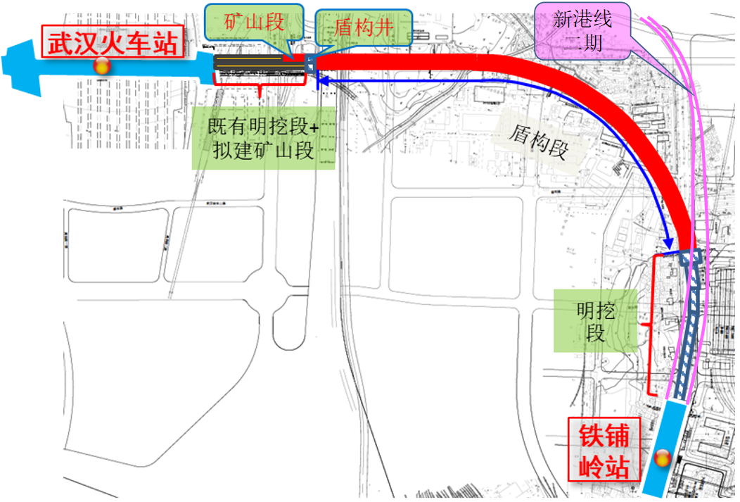武漢火車站~鐵鋪嶺站盾構(gòu)區(qū)間平面圖