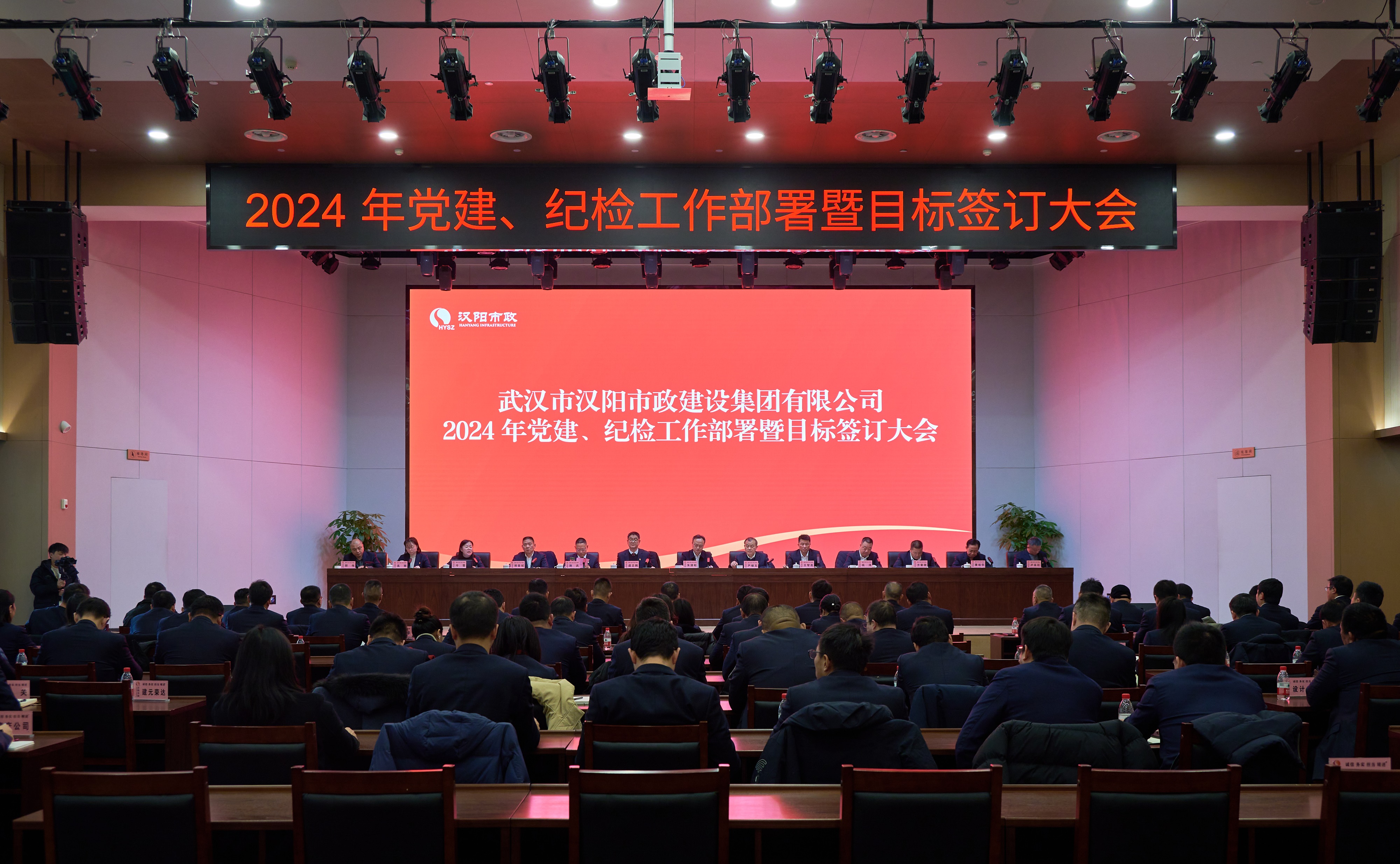 2月28日上午,漢陽(yáng)市政召開(kāi)2024年黨建、紀(jì)檢工作部署暨目標(biāo)簽訂大會(huì)。漢陽(yáng)區(qū)建設(shè)局局長(zhǎng)朱源松蒞臨指導(dǎo),漢陽(yáng)市政黨委書(shū)記、董事長(zhǎng)嚴(yán)悌文,副董事長(zhǎng)虞志鵬,總經(jīng)理王智高等黨委班子成員,集團(tuán)及分子公司副科及以上干部、各部門負(fù)責(zé)人參加會(huì)議。